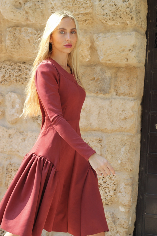 שמלת ז'מש מתרחבת בורדו
