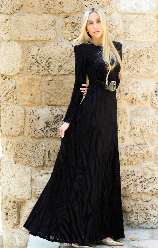 שמלת קטיפה מקסי שחור